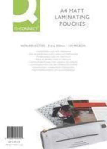 Q Connect Matt (non-reflective) Laminating Pouches. Size: A4 216x303mm. 125 micron each side. Pack 100.