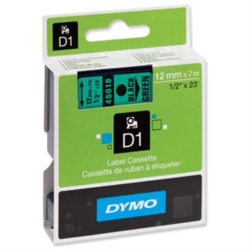 Dymo D1 plastic tape for Dymo professional labelmakers: DYMO Pocket 1000plus/2000/3500/5500/LM100/200/300/LP200/300/LP150/250/350 & LM150/350/450 12mmx7m Black/Green