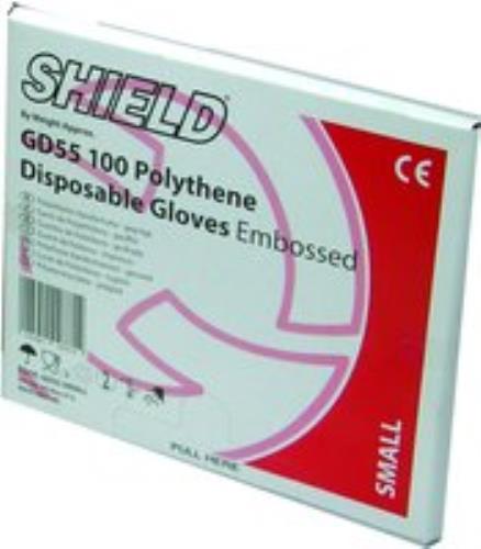 SHIELD EMBOSSED POLY GLOVES M PK100
